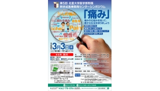 北里大学医学部附属新世紀医療開発センターは、3月3日(木)に第5回シンポジウム「痛み―痛みの仕組みを知って、豊かな生活を送りましょう―」を開催。病院を受診する動機である「痛み」について、その意味、種類、対応などを分かりやすく解説する。参加費無料。要事前申し込み。