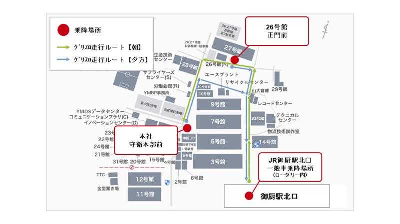 ヤマハ発動機株式会社は、静岡県磐田市のJR御厨駅北口ロータリーと当社本社の区間で、本社従業員の通勤向けに、当社製グリーンスローモビリティ(以下、グリスロ)の運行を開始します。