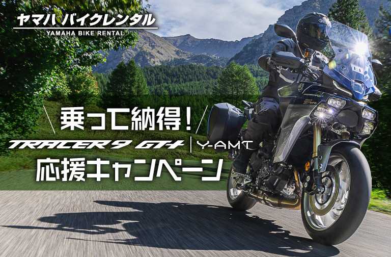 | 内容 | ヤマハ バイクレンタルでTRACER9 GT+ Y-AMTをレンタルいただいたお客様を対象に、レンタルご利用後TRACER9 GT+ Y-AMTの新車をヤマハ バイクレンタル加盟店YSPでご購入いただくと、お支払い総額から上限20,000 円(税込)までのレンタル利用料金分を車両購入代金の一部としてサポートします。 ※サポートされるレンタル利用料金には基本料金・車両オプション・用品オプション・補償オプション利用料を含みます。 |