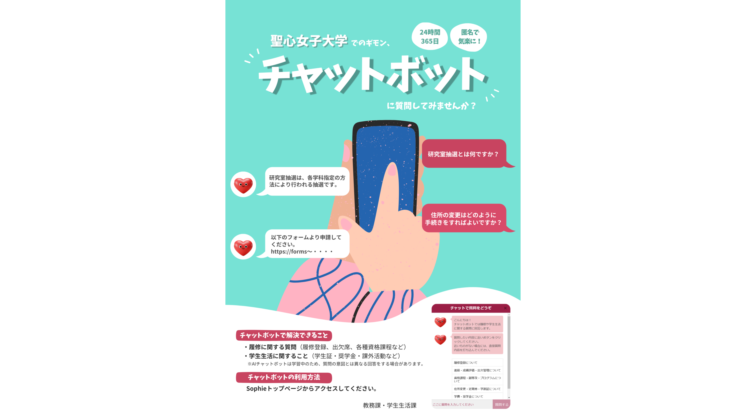 聖心女子大学は今年4月1日から、学修サポートの向上と窓口サポートの充実を図り、学修の効率性と学生満足度を向上させることを目標としてAIチャットボットを導入。学生からの各種問い合わせへの自動回答ツールとして活用している。
