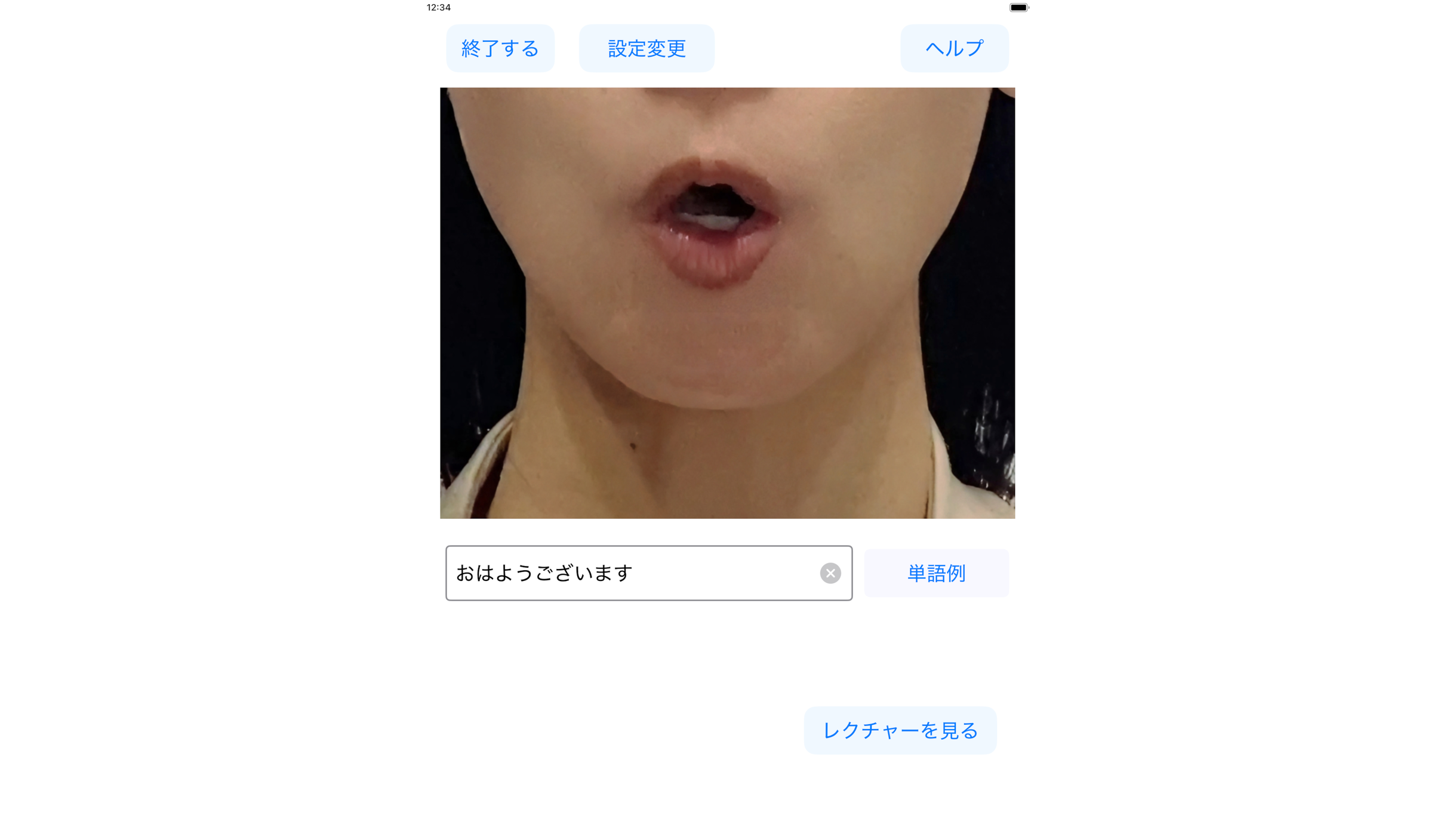 これまでの研究成果や画像生成AI技術を活用し、任意の日本語の仮名文字から発話動画をアプリ内で自動生成します。日本語の音と口の動きの関係を覚えたり、発話の動画を見たりしながら口の動きを読み取るトレーニングができます。主に、難聴者やその家族、声による会話が難しい人と接する方々などにご利用いただき、コミュニケーションに役立てていただくことを想定しています。