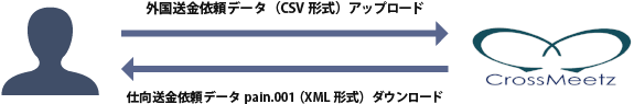 CrossMeetzは、これまでもISO20022対応ソリューションとして「電文作成サービス」を提供しておりました。このたび追加する新機能により、金融機関に限らず事業法人のお客様におかれましても、ISO20022に準拠した外国送金依頼データ(pain.001)の作成が可能となり、国際基準への円滑な対応を実現していただけます。