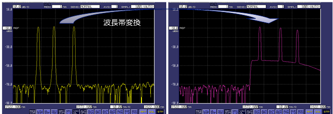また、このときAPN内の光パスを効率よく収容するため、Ph-EXの波長帯変換機能を適用することで、その伝送区間では利用していない波長帯に波長変換を施して信号伝送を実施しました。