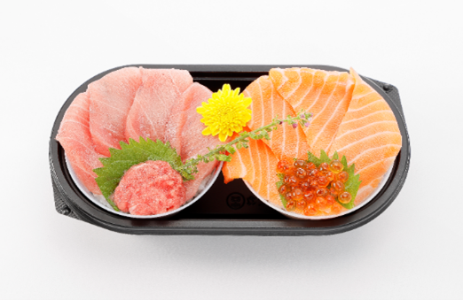 鮮魚では,神奈川県産地魚や天然魚にこだわったお造りなどのほか,厚切り冷凍切身やミールキットなどの簡便性の高い冷凍商材を販売。寿司では,生ネタにこだわり,鮪とサーモンをはみ出すほどにたっぷりのせた「欲張りミニ丼」を販売いたします。
