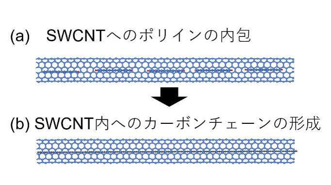 【名城大学】世界初!一次元状カーボンチェーンを最安定な状態で単層カーボンナノチューブ内に高収率合成