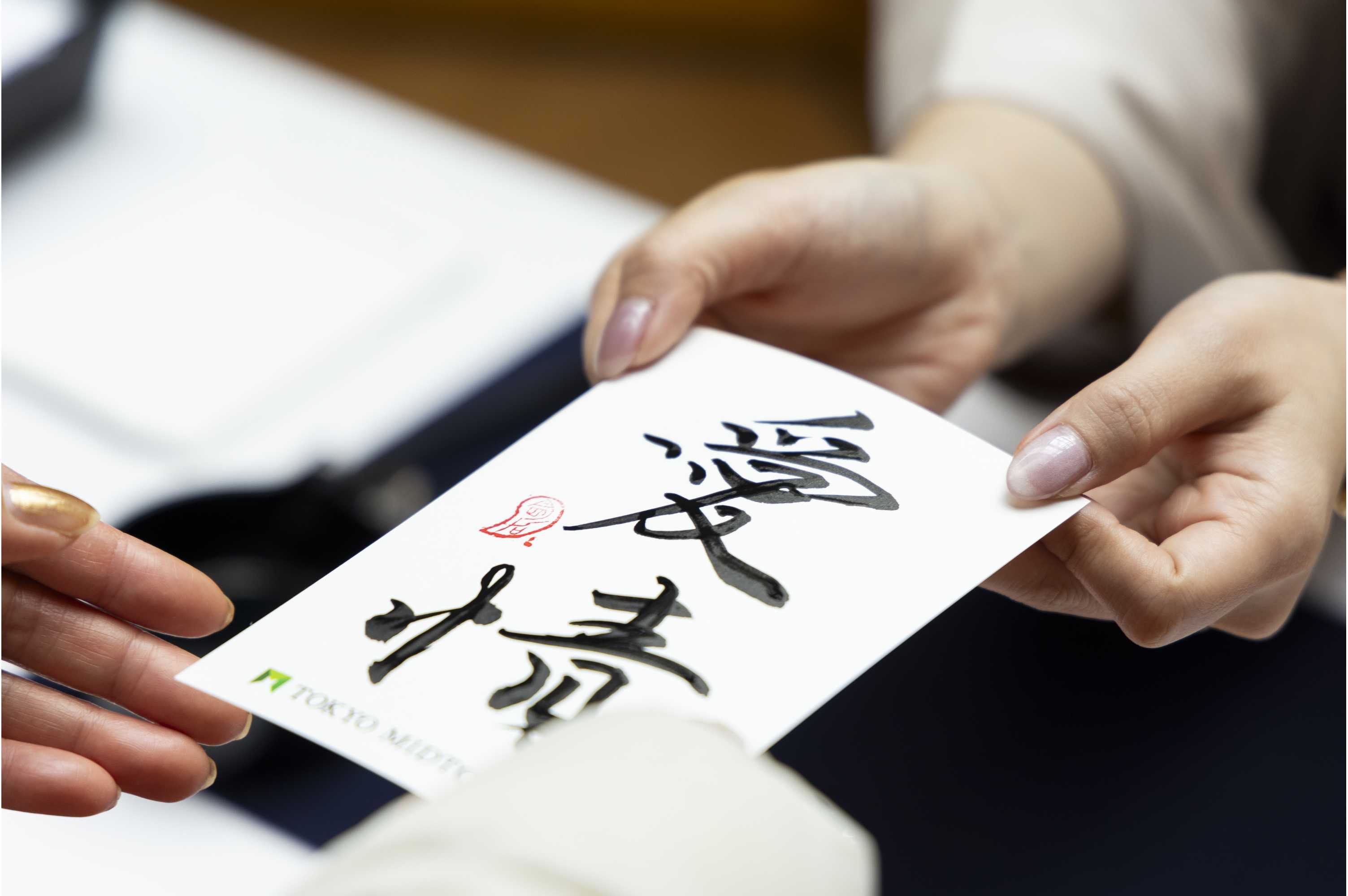 2名の書道家が「東京ミッドタウン・オリジナル和紙年賀状」に参加者の好きな文字(2文字まで)を書いてプレゼント。