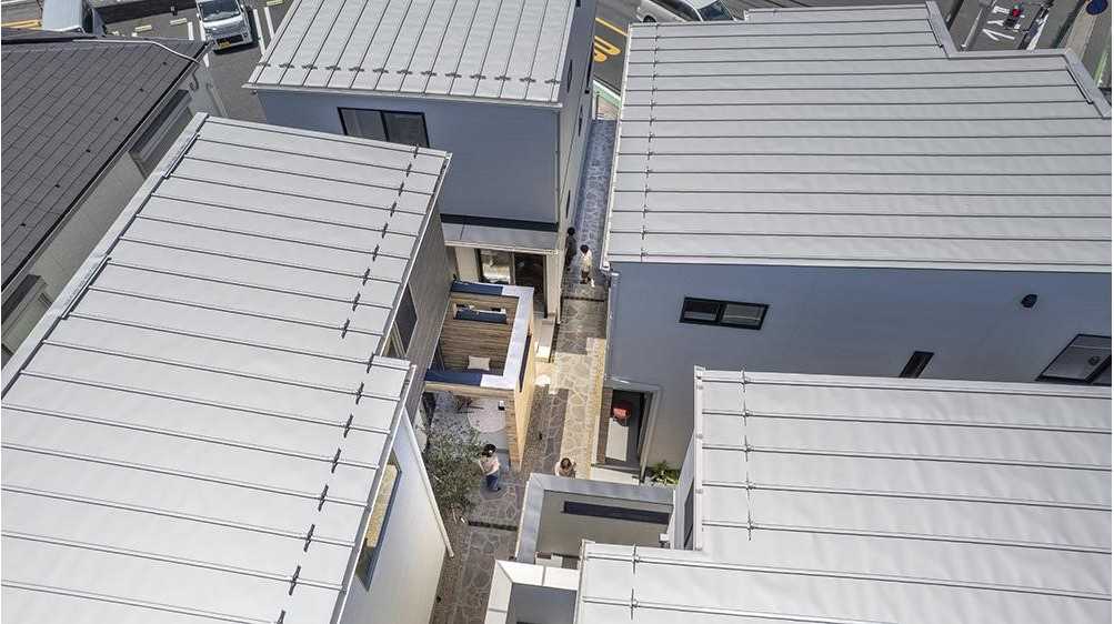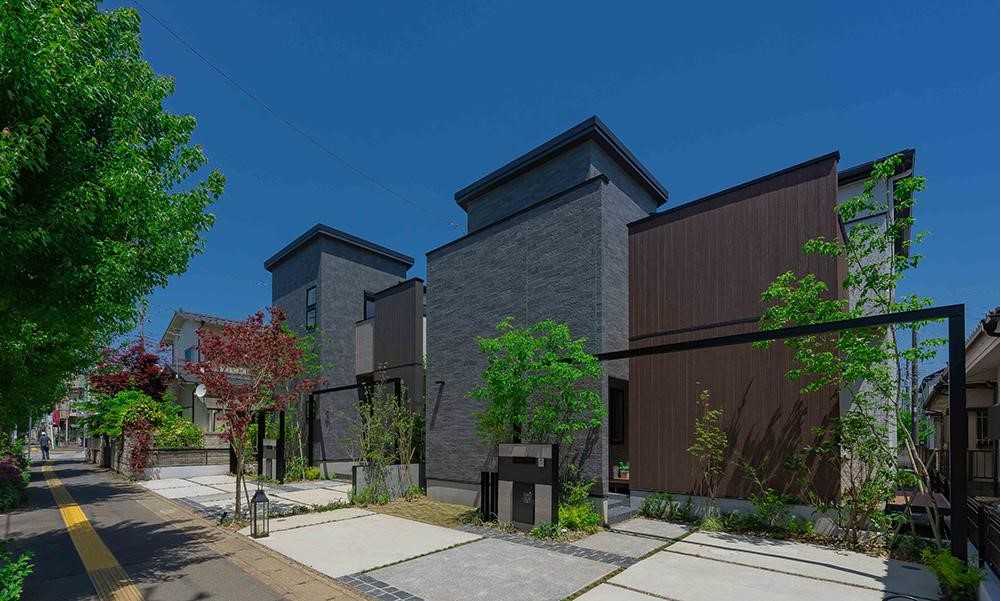 低層住宅地に佇む5棟の分譲住宅です。中央には、子どもたちが元気に遊び、家族が見守れる「遊び場ガーデン」を設置。建物と外観が一体となったデザインで、地域住民の安全と安心につながる、コミュニティ形成の基盤となる空間を創出しました。