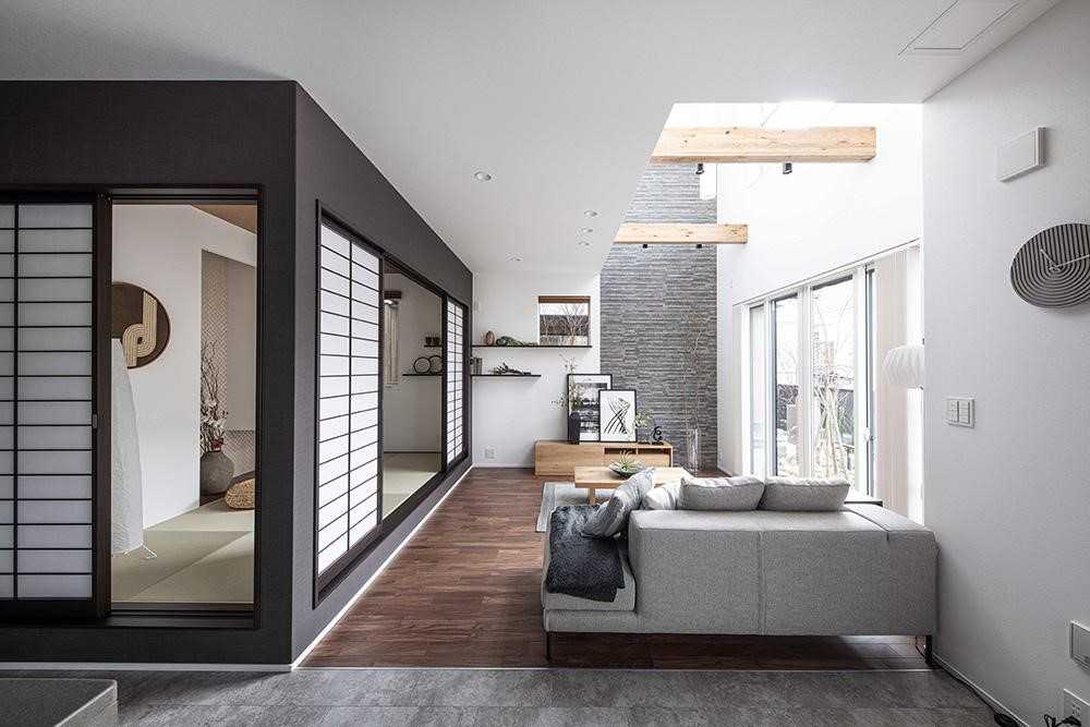 隣接する2つの区画を一つの敷地として捉え、「中間領域を活用した、高いプライバシーを持つ住まい」を創造した住宅です。住戸間の中間領域を巧みに組み込むことで、道路からの視線を遮断し、快適な居住空間を確保しました。室内のプライバシーを守りつつも、外部とのつながりを保ち、カーテンを閉めずに自然光と新鮮な空気を確保できます。
