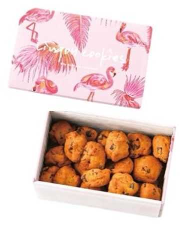 フラミンゴ柄の可愛らしいデザインの缶が印象的。バターをたっぷり使った生地にマカダミアナッツとチョコチップをたっぷり合わせたクッキーです。