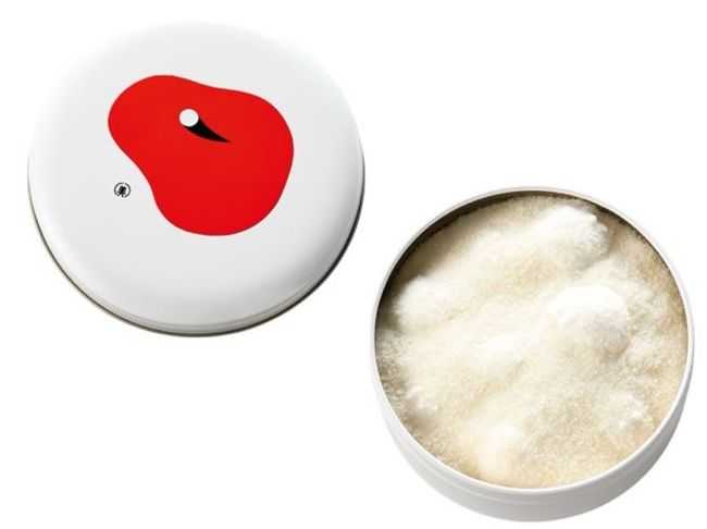 自家製のマシュマロの中に、青森県産リンゴを使用したリンゴジャムを包み込んだお菓子です。シンプルなリンゴの絵柄が特徴。