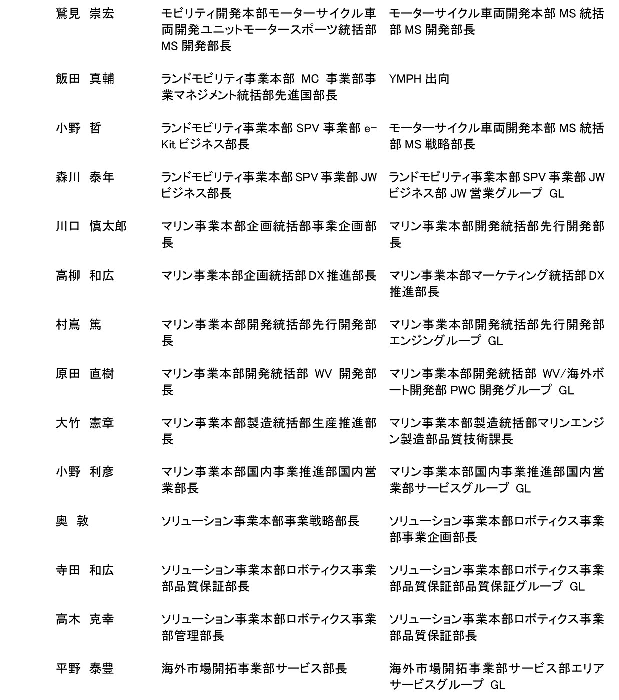 ・「WV/海外ボート開発部」から「WV開発部」へ名称変更する。