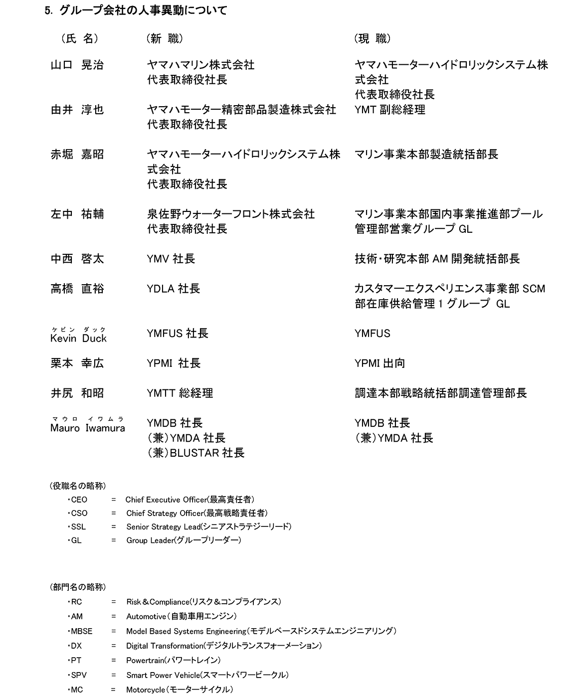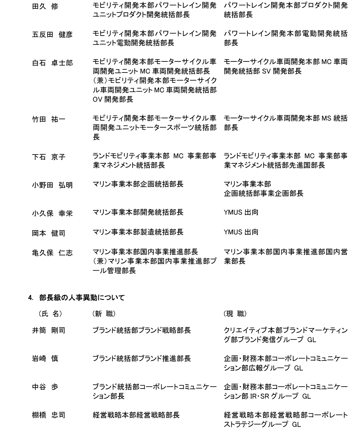 ヤマハ発動機株式会社は、2025年12月23日開催の取締役会において、2026年1月1日付の組織変更と人事異動を下記のとおり決定しました。