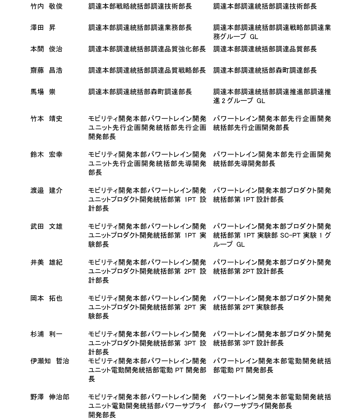 ・「パワートレイン開発本部」を「モビリティ開発本部」へ現有の機能を移管し、「パワートレイン開発ユニット」に名称変更する。