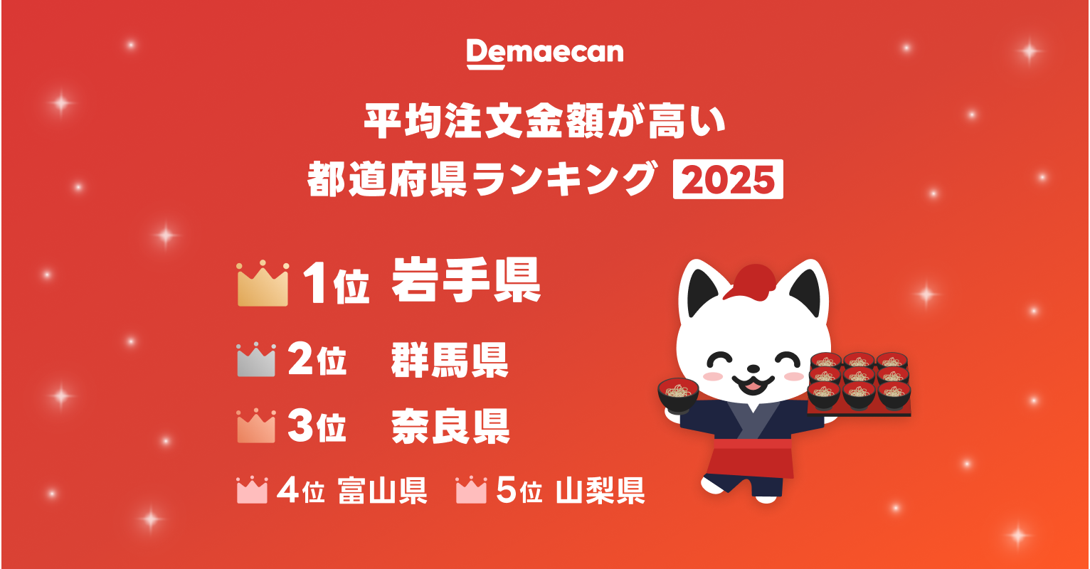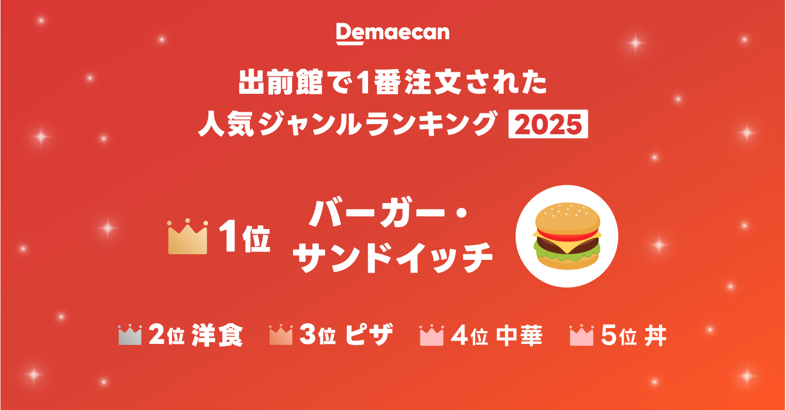 株式会社出前館は、運営する日本最大級のデリバリーサービス「出前館」の2025年の注文データ(集計:2025年1月1日~11月30日)を集計・分析した“出前館 年間デリバリートレンド”を発表いたします。
