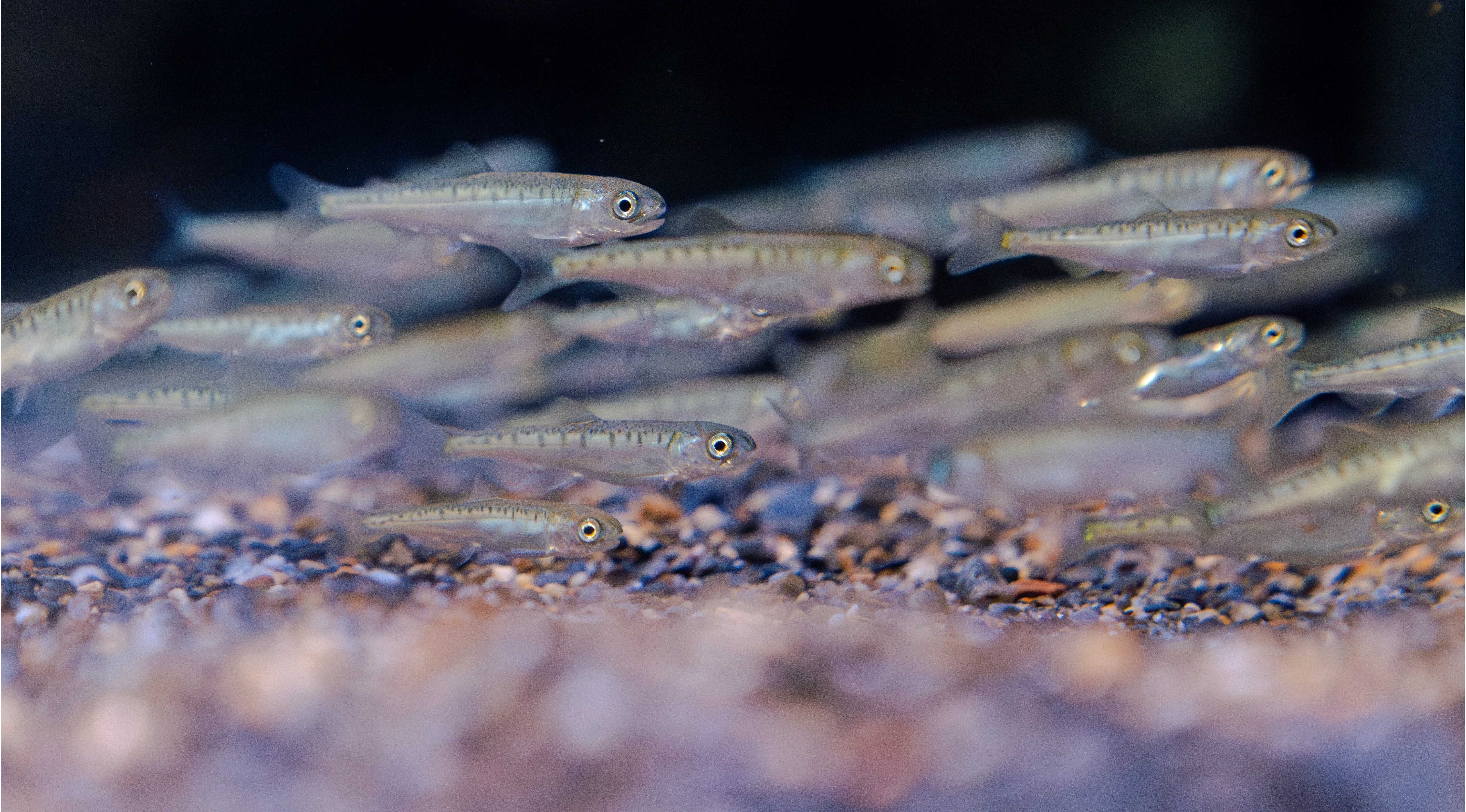企画展「育て!いくらちゃん」では、初開催の2014年から2024年まで、イクラのふ化からサケの稚魚へと成長する過程を展示してきました。展示のイクラは、京都の由良川へ遡上したサケの卵を育て稚魚を放流する活動を主催する「由良川サケ環境保全実行委員会」からお預かりしたものです。館内で飼育した後、3月に飼育スタッフが稚魚を由良川へ放流していました。