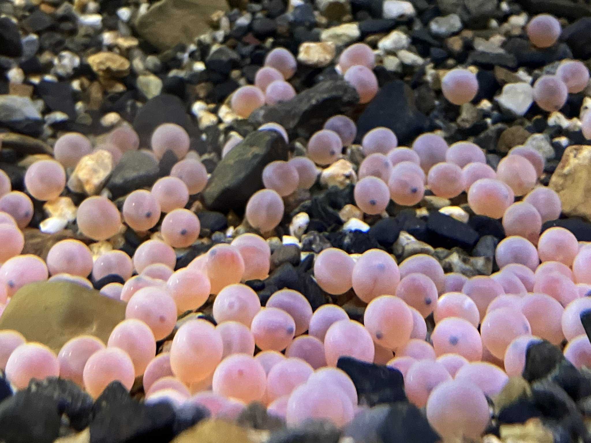 そこで今年は、サケを中心とした環境教育に取り組まれている「サケのふるさと 千歳水族館」にご協力いただき、千歳川へ遡上したサケのイクラを展示します。お預かりしたイクラは稚魚になるまで飼育し、3月中旬頃に千歳へお返しして千歳川で放流されます。
