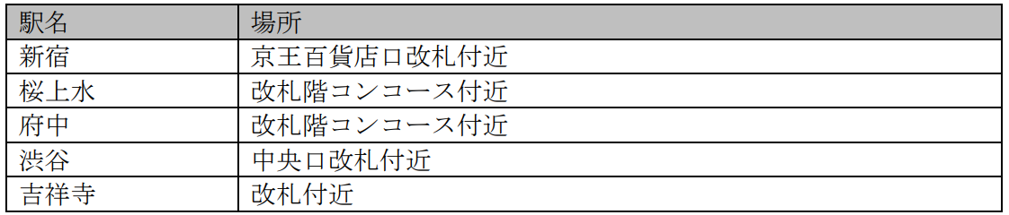 当企画では、京王線新宿駅や井の頭線渋谷駅など全5カ所に、