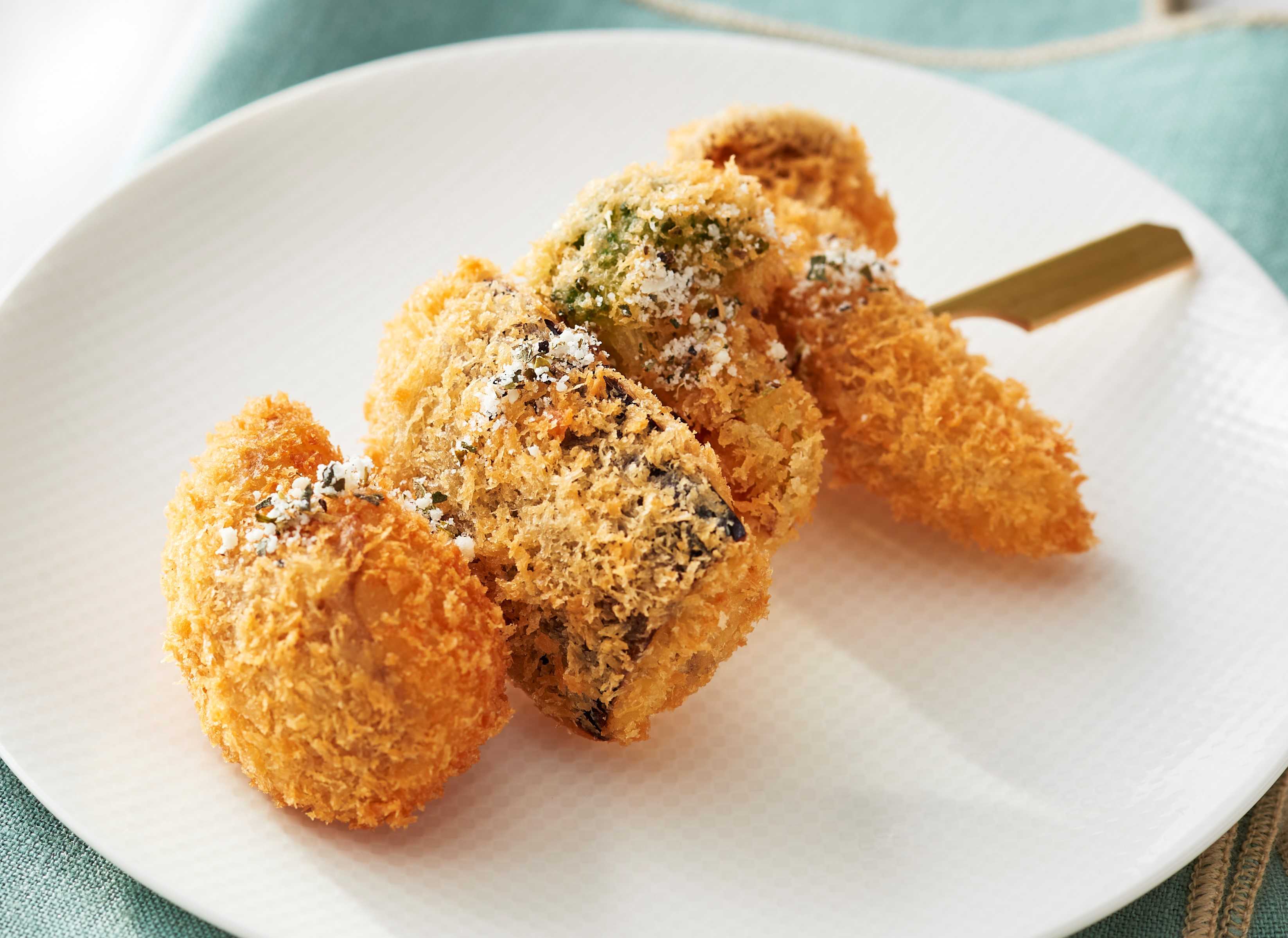加熱することで甘味がでるおいしいキャベツに、玉子やイカすり身、鰹の旨味を合わせたお好み焼き風味のカツ。生姜の香りがほんのり感じられ、おかずにもおつまみにもおすすめの一品です。