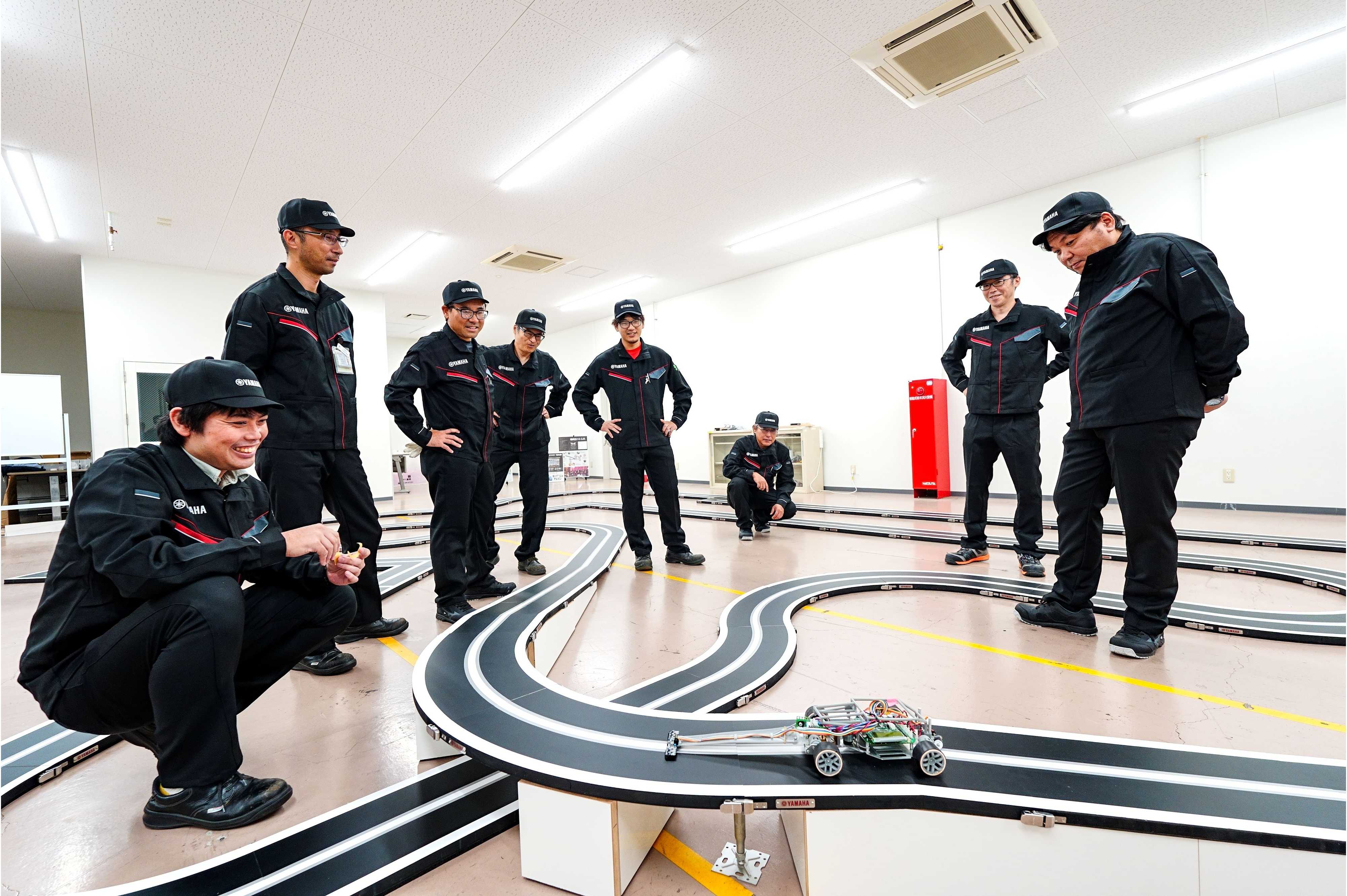 「社会人になっても“モノづくりを楽しむ心”を持ち続けたい。そのための取り組みの一環として、毎週1回、部門内の有志による放課後活動を行っています」と山本さん。活動日には職場の枠を超えてメンバーたちが集まり、「大人が本気になったらこんなにスゴい!」を目指して、オリジナルのマイコンカー開発を楽しんでいるのです。
