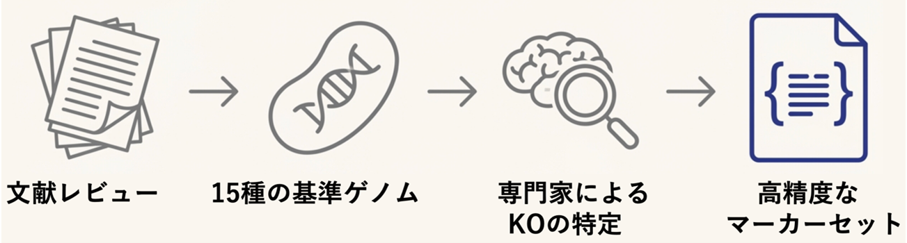 定義したマーカー酵素とルールに基づき、ゲノムの遺伝子リスト(KO組成)からCO₂固定経路の有無を自動判定するツール「AutoFixMark」を開発しました。このツールはPythonで動作し、GitHubレポジトリで公開済みであり誰でも無償で利用可能です。