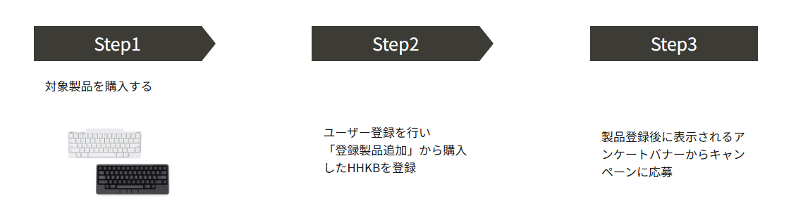 (3)「ユーザー登録(マイページ)」の「登録製品追加」ボタンから購入したHHKBを登録してください。