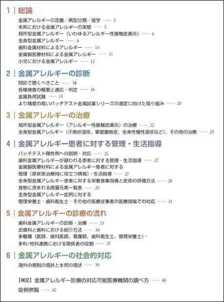 金属は、日常生活に欠かせない物質である一方で、幅広い医療材料としての使用も増加しています。金属アレルギーは、すべての方に発症しうる疾患であるものの、わが国における診断や指導に関する正しく整理された情報がなく、適切な医療を受けられずに苦しんできた多くの患者さんの存在が課題となっていました。本手引きでは、わが国の金属アレルギーの実態を明らかにするとともに、診療・管理の実践的な方法について分かりやすく解説。本手引きが広く普及し、活用されることで、わが国における金属アレルギー診療が質的に大きく進歩し、国民の健康と生活の質の向上に貢献できると考えています。