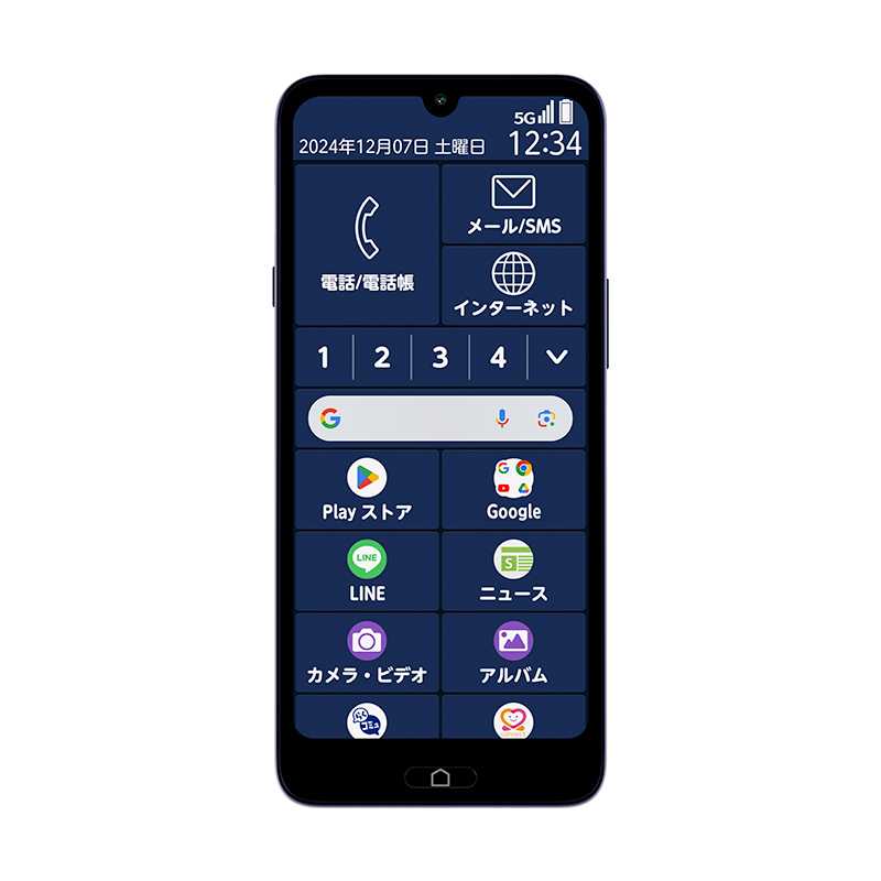 ※1の約6.1インチの大画面で、見やすくわかりやすい、らくらくスマートフォンの専用UIを採用しています。画面下にはホームボタンを配置しているので、迷うことなくホーム画面に戻ることができます。
