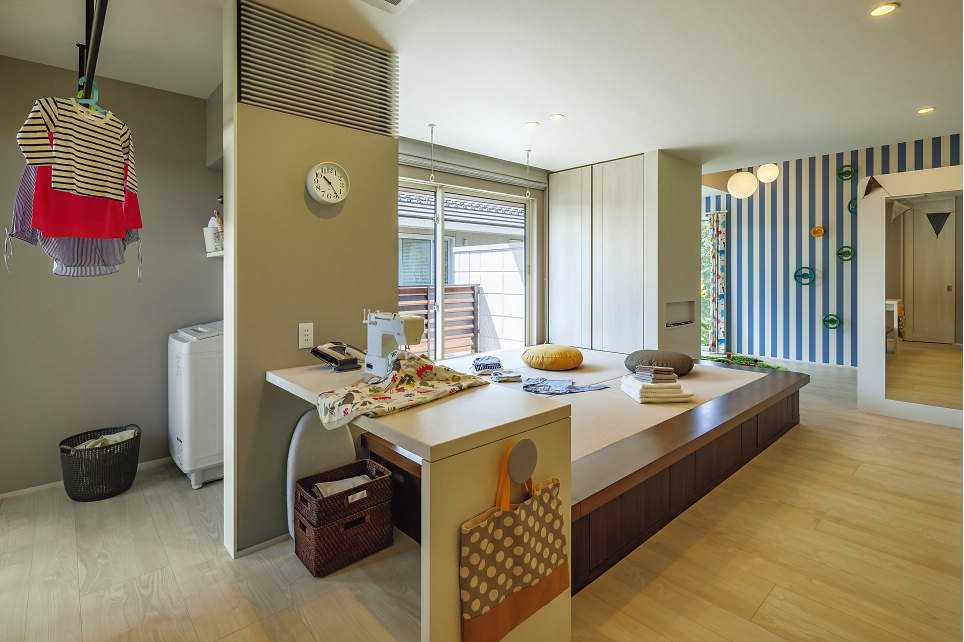 家族人数が多く洗濯頻度の高いご家庭こそ、明るい陽射しの入る空間への設置を検討してみませんか。理想としては、窓の近くや屋外への出入りが可能な「衣家事専用室」を設けること。専用室なら、時間や音、視線を気にせずに洗濯や室内干しがしやすく、衣類収納も備えれば「洗う・干す・しまう」の最短動線が完成します。
