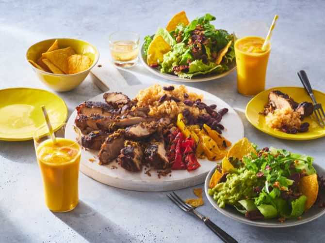 「ジャークチキン」とは、オールスパイスやシナモンで味付けをしたジャマイカ発祥のスパイシーなグリルチキンのことです。お米とお豆にタイムを組み合わせたカリブ伝統の「ライスアンドビーズ」とよく合います。