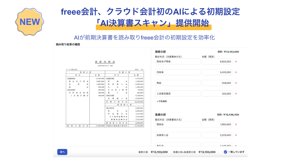 - freee会計は「AI決算書スキャン」の提供を開始しました