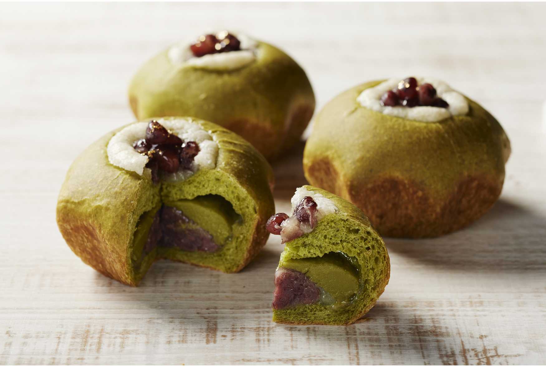 写真左・右奥「桜クロワッサン」、中央「桜あんぱん」右手前・中央奥「抹茶あんぱん」イメージ