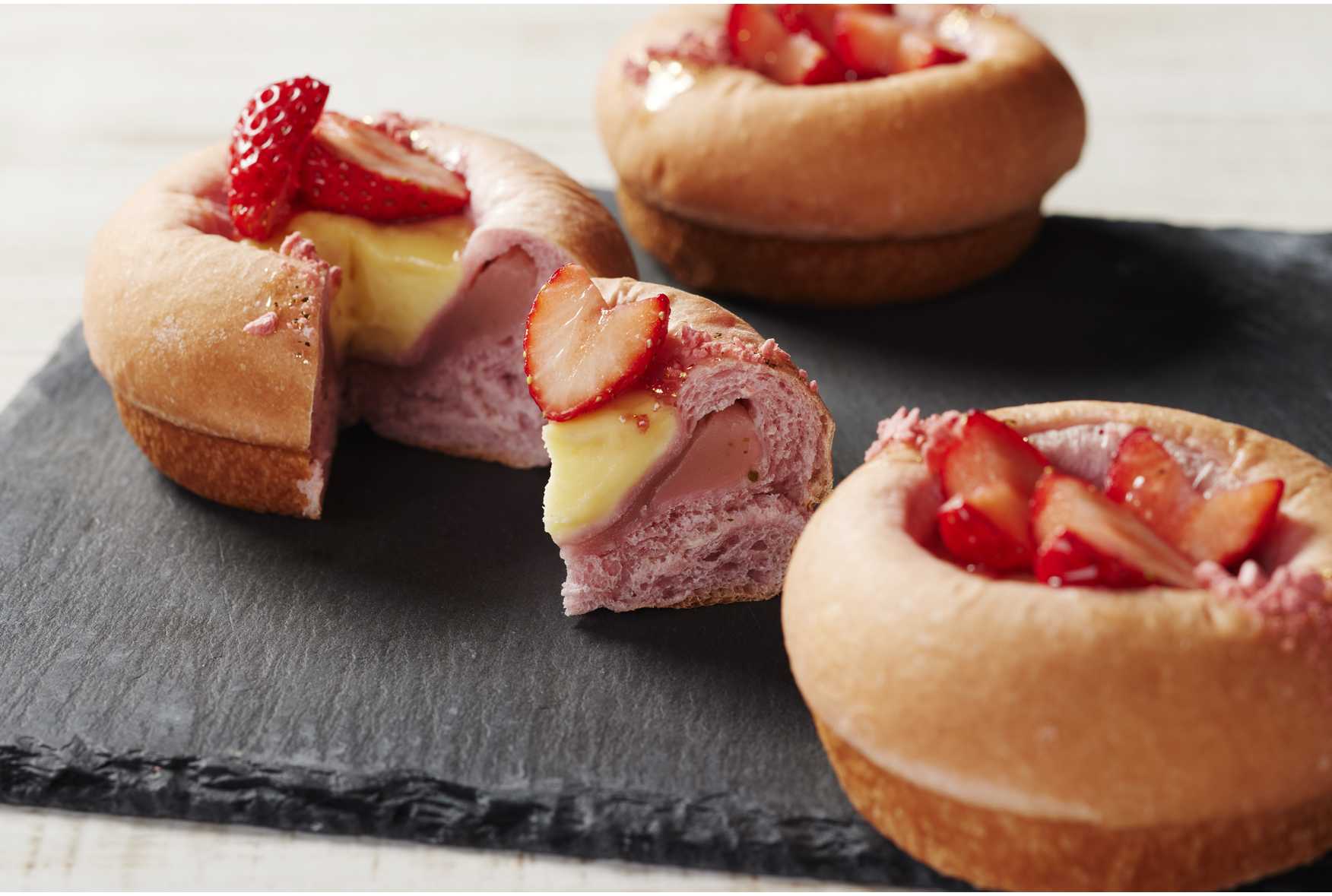 毎年人気の定番。サクサク、ほろっとくちどけが良く、バターの風味が豊かなパイ生地に、上品な甘さのカスタードクリームを絞って焼き上げ、さらにカスタードクリーム、フレッシュのいちごをのせた王道デニッシュです。
