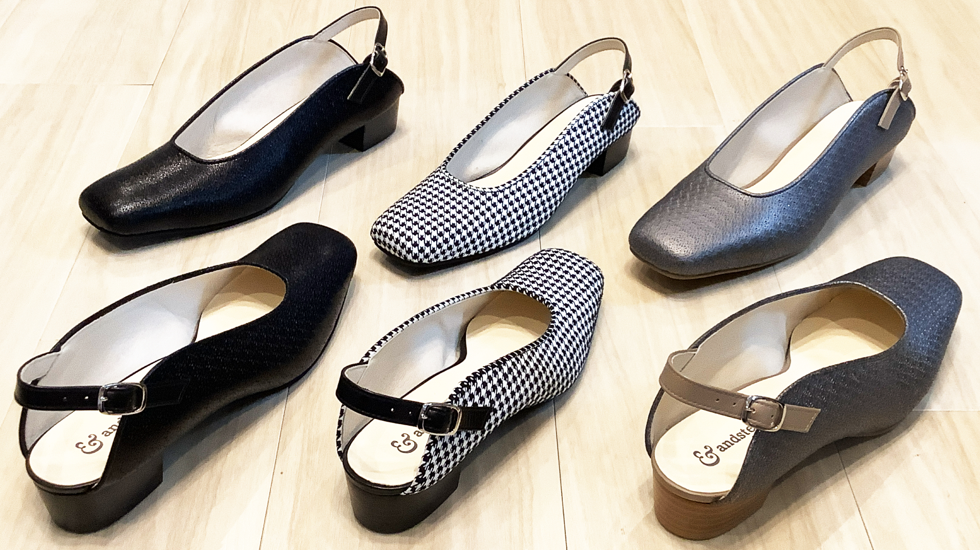 な解放感」と「パンプスの安定感」を両立したデザイン、「歩きやすい」「足指が楽」「キチンとして見える」と人気になり、今シーズン満を持して集中オーダーの対象となりました。