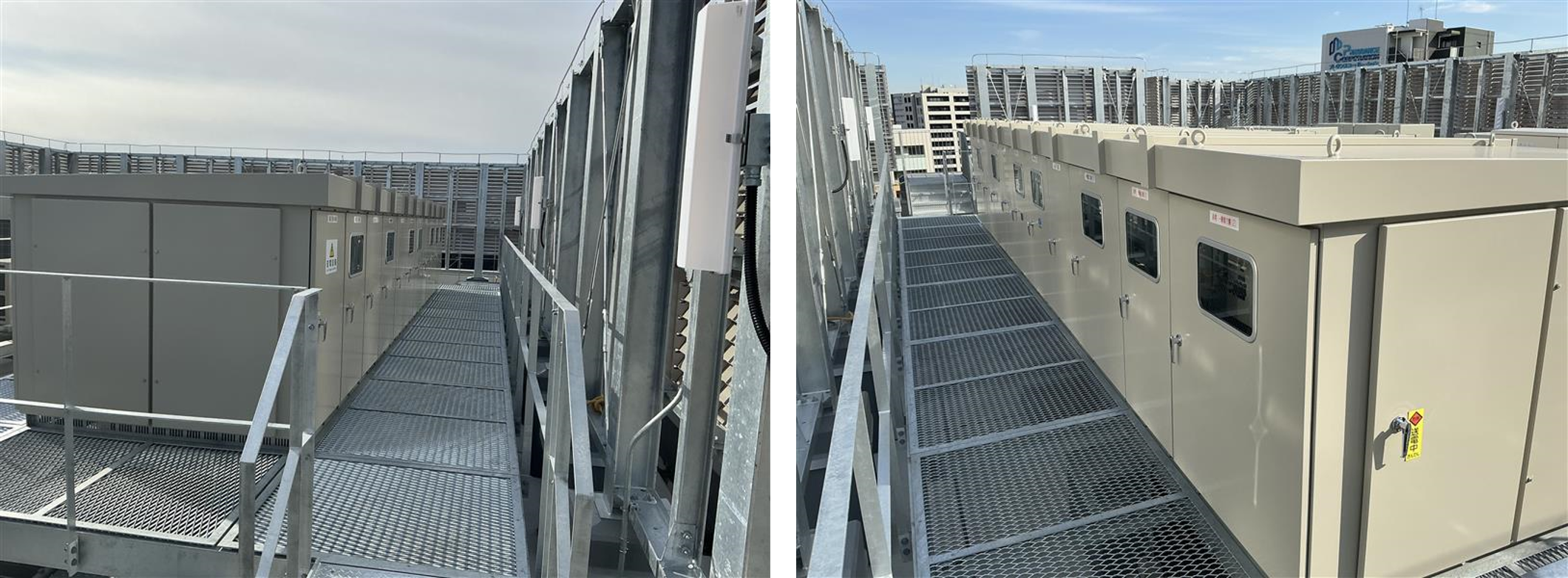 従来のキュービクルでは、高さが屋上景観に影響を与える要因となる場合がありました。本事例では高さを低く抑えることで、屋上からの立ち上がり感を軽減し、建物全体としての見た目をすっきりと整える効果が期待できます。意匠性が重視される建築物においても、電気設備を“主張させない存在”として計画できる点が、本取り組みの特長です。