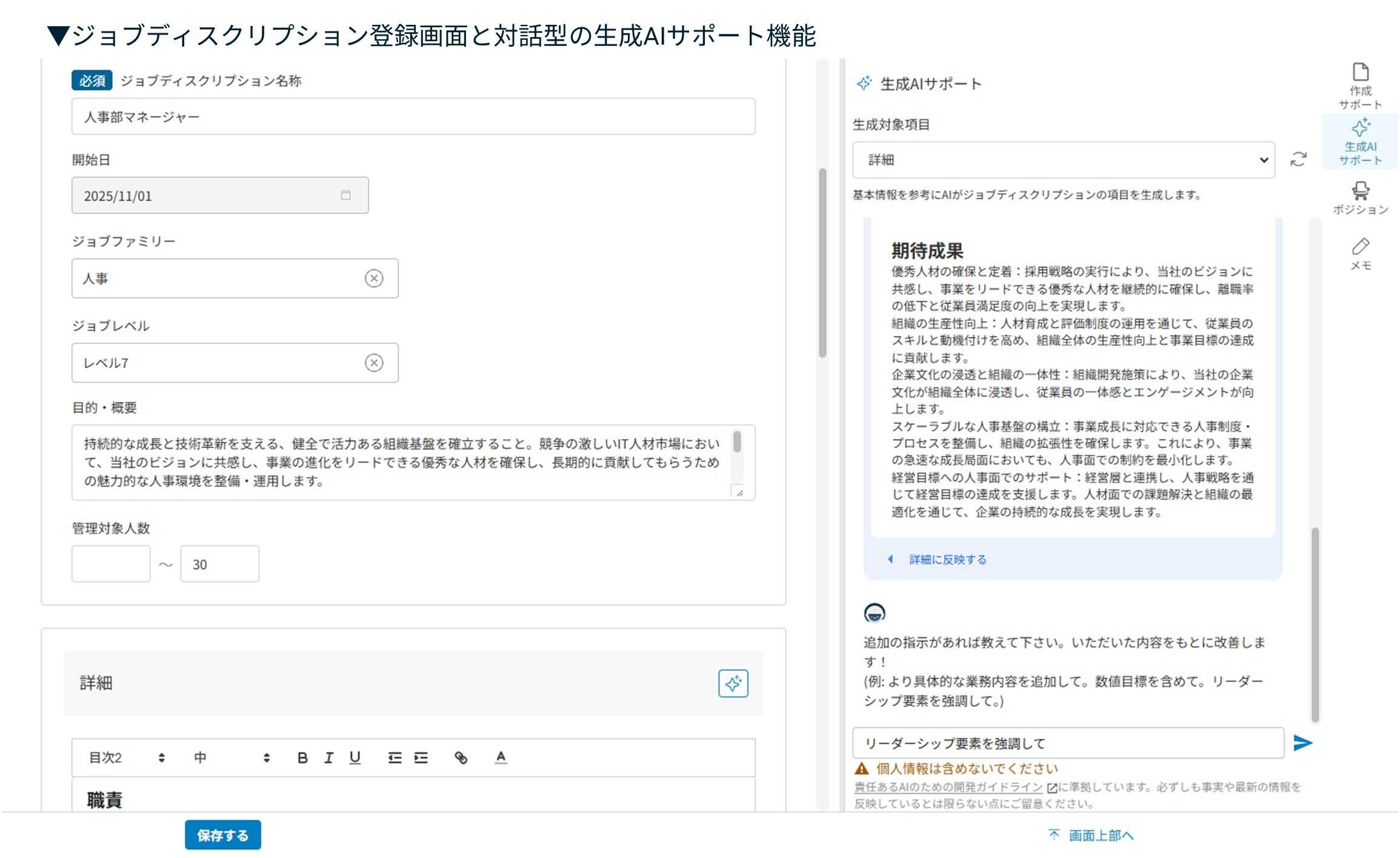 ●生成AIを利用したジョブディスクリプション作成支援機能の特長