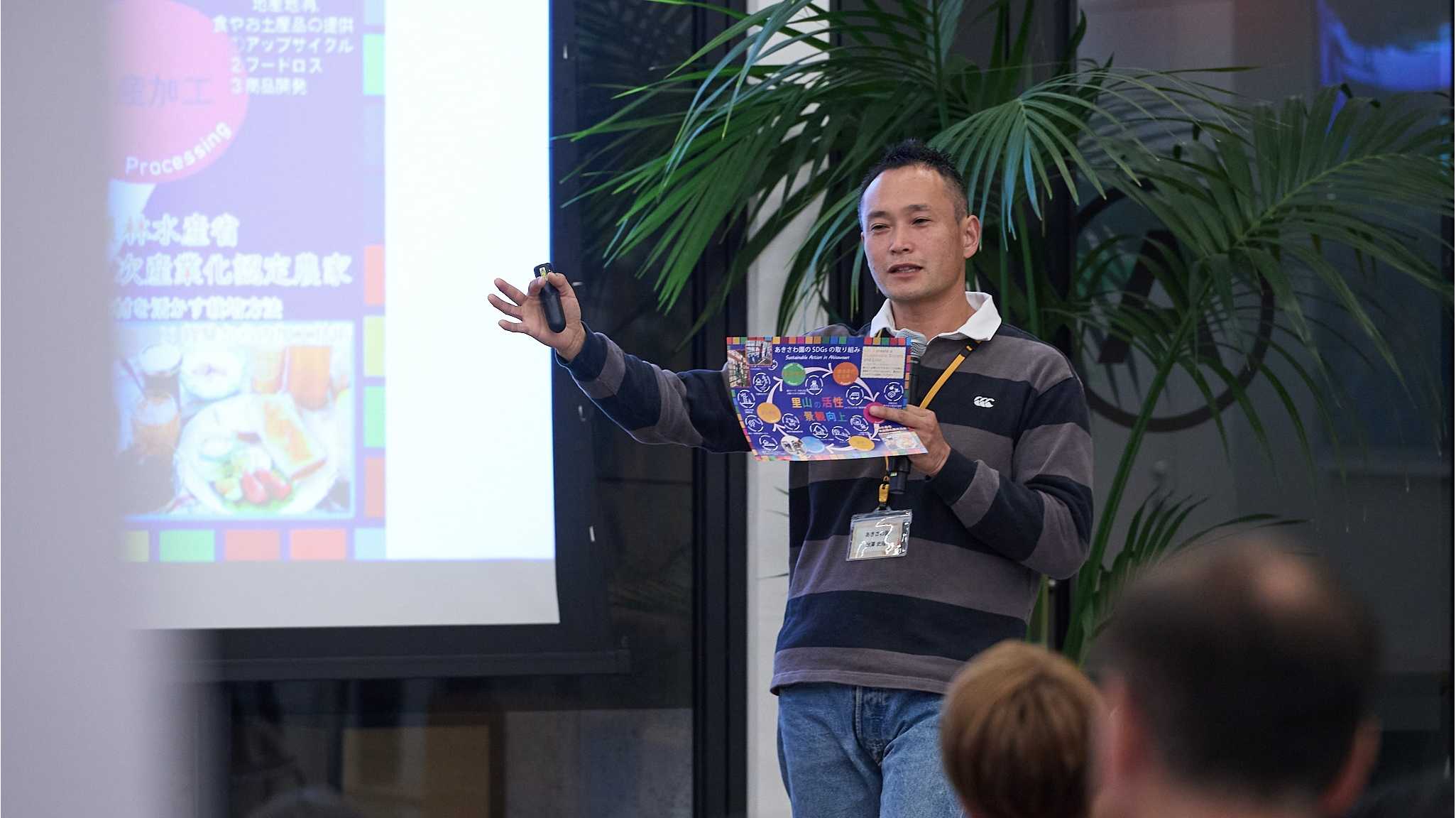 また、竹林の放置といった課題もあり、これに対しては、建築家と協力して、みかんの貯蔵庫や家づくりに竹を活用し、一軒の家で1,000本もの竹を使うことで、景観づくりや資源の再利用を同時に行っている事例を紹介いただきました。なお、この取り組みは、古代からの伝統を受け継ぎながら、現代の課題に対処し、地域全体を持続可能な形で再生させることに焦点を当てているということが強調され、このように、よくある一時の商品販売のポップアップだけではなく、細く長く、誰かに依存せず、皆でこれからの欲しい経済、未来、環境を作っていくことこそが大切だと力を込めました。