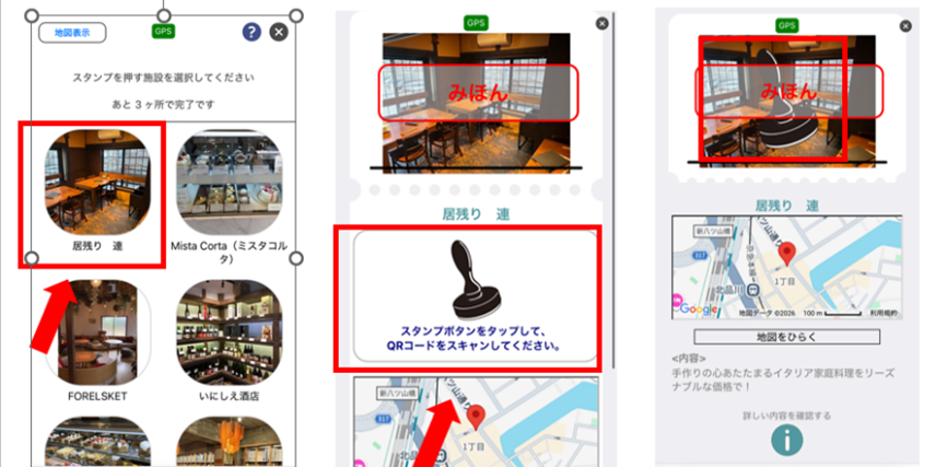 対象店舗で1会計につき500円(税込)のご利用でスタンプ1個獲得ができます。各スポットにある二次元コードをお読み取りください。