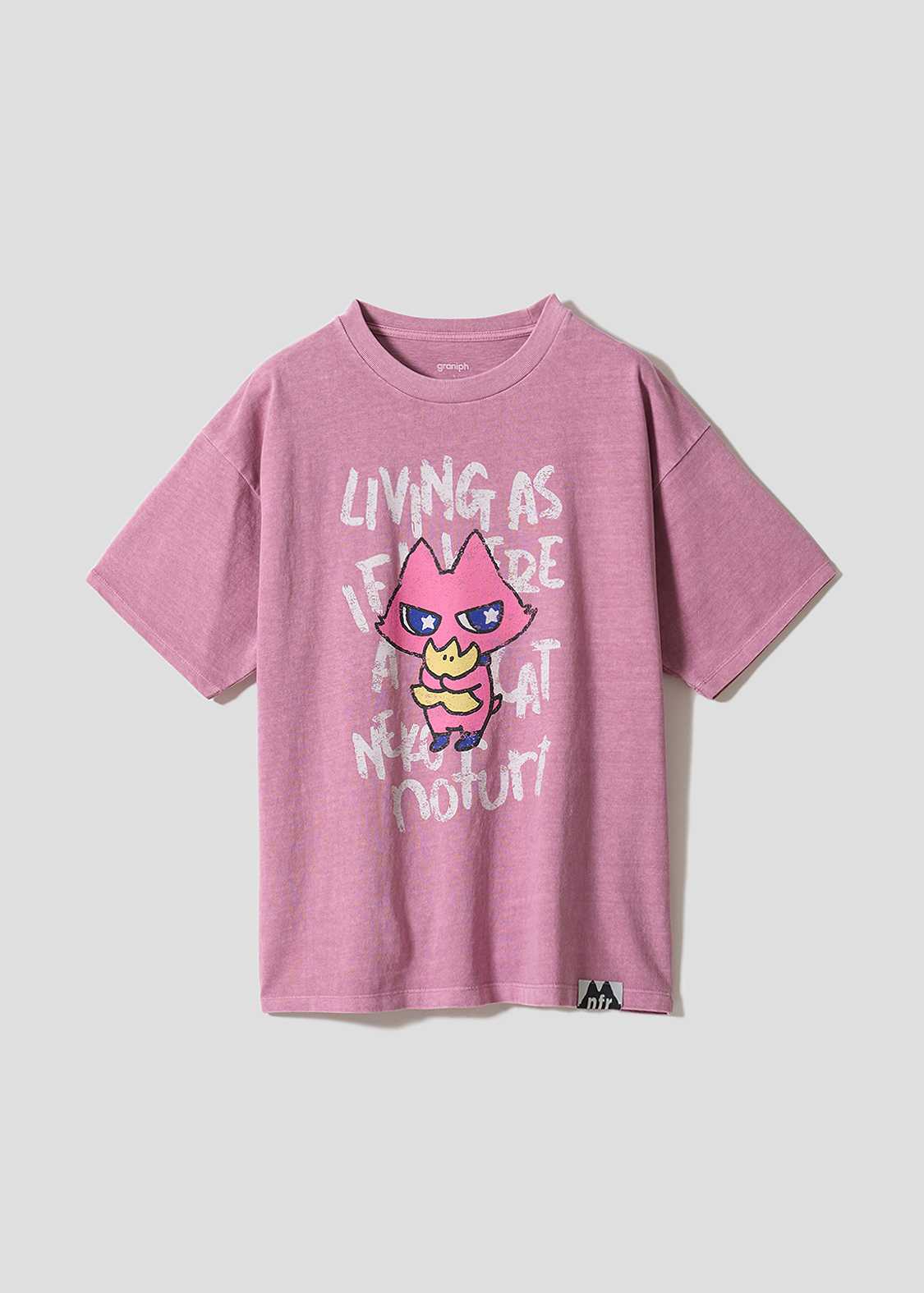 この春、グラニフのキャラクターデビューの最初を飾る「nofuri(ノフリ)」は、「ネコのフリ」をして地球の生活に溶け込めるよう「ネコ練習中」のキャラクター。自分の体の色や模様を変えてしまうくらい、自分の“好き”を全身で表現しながら人間の文化を楽しんでいます。いつも一緒にいるスターフルーツは、地球暮らしの大切な相棒。鏡をチェックする姿や、気になるもの・知りたいことをワクワクしながら見つめて研究する姿は、はじまりの季節のさまざまなシーンとも重なります。