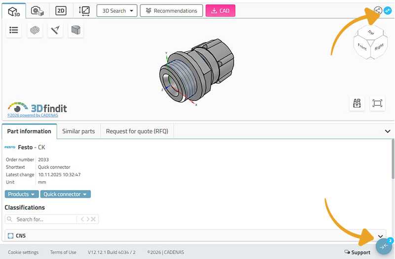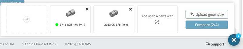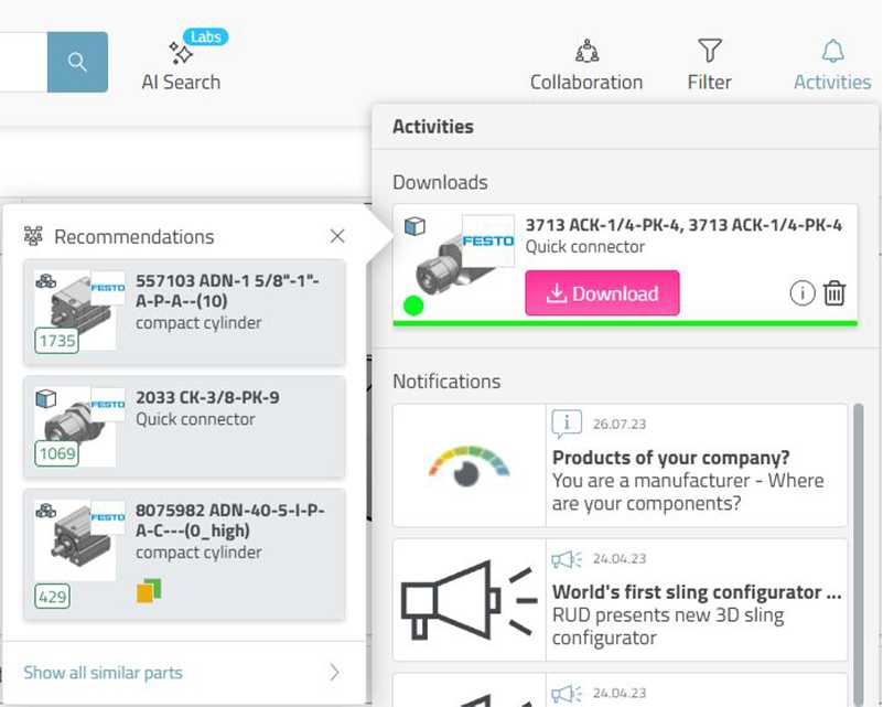 コンポーネント(部品)のダウンロード後、3Dfinditは「よく一緒に使用される部品」や「機能的に互換性のある部品」を自動的に表示するようになりました。