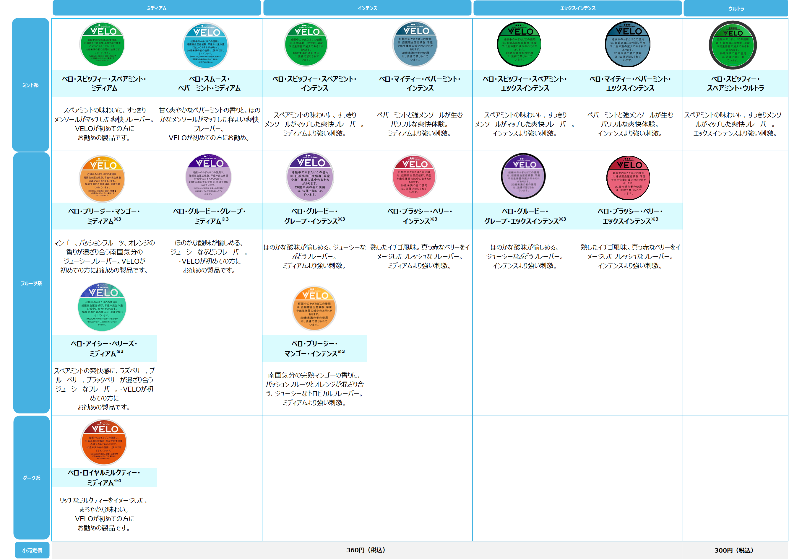 オーラルたばこ「VELO」製品一覧