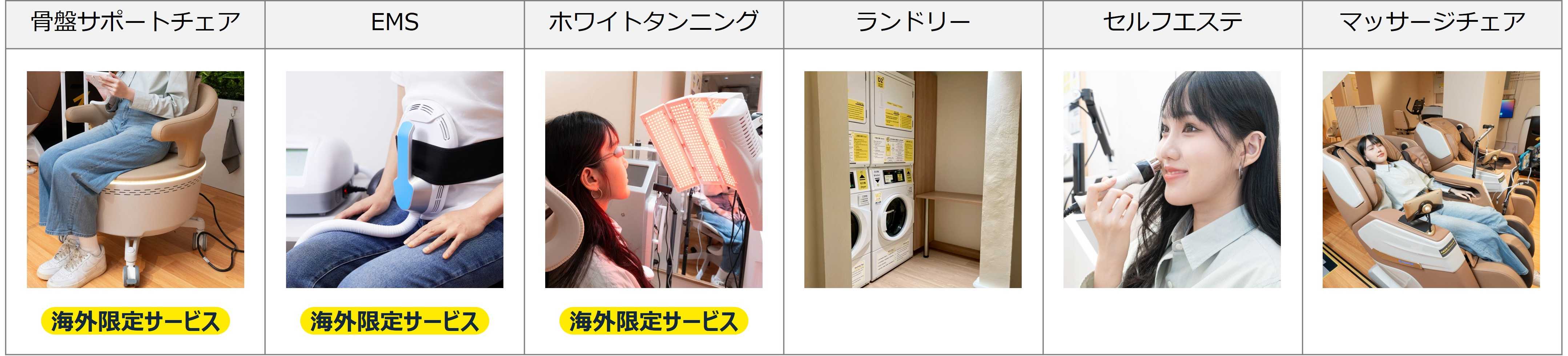 - 戦略的サービス導入: 香港で高い反響を得た「EMS」※3や「骨盤サポートチェア」※3など、海外店舗ならではの付加価値サービスを充実させます。