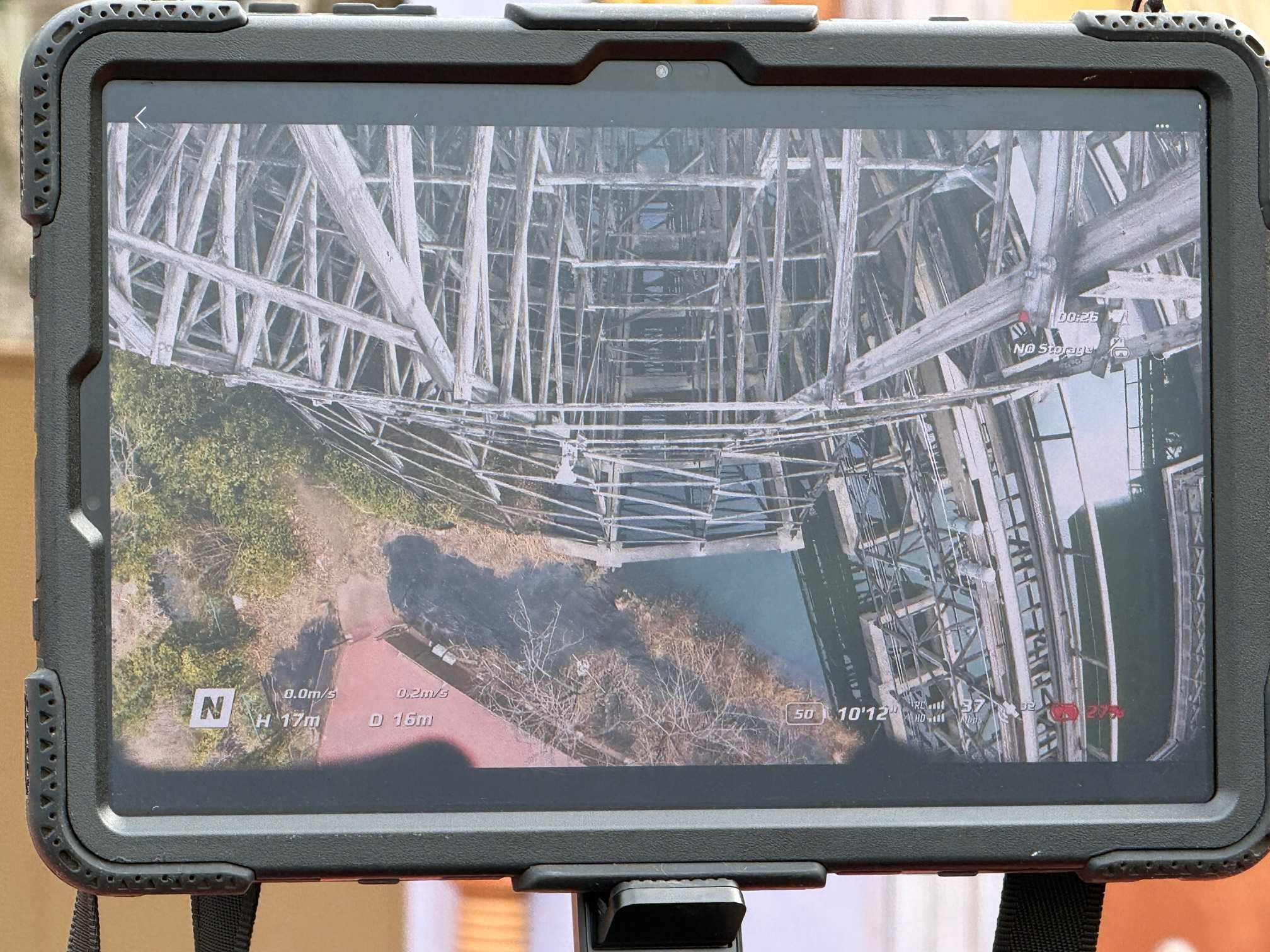 模擬点検を実施し、人が立ち入りにくい高所や構造体内部、従来目視では確認が難しい箇所に対し、遠隔から安全に確認可能であることを検証いたしました。