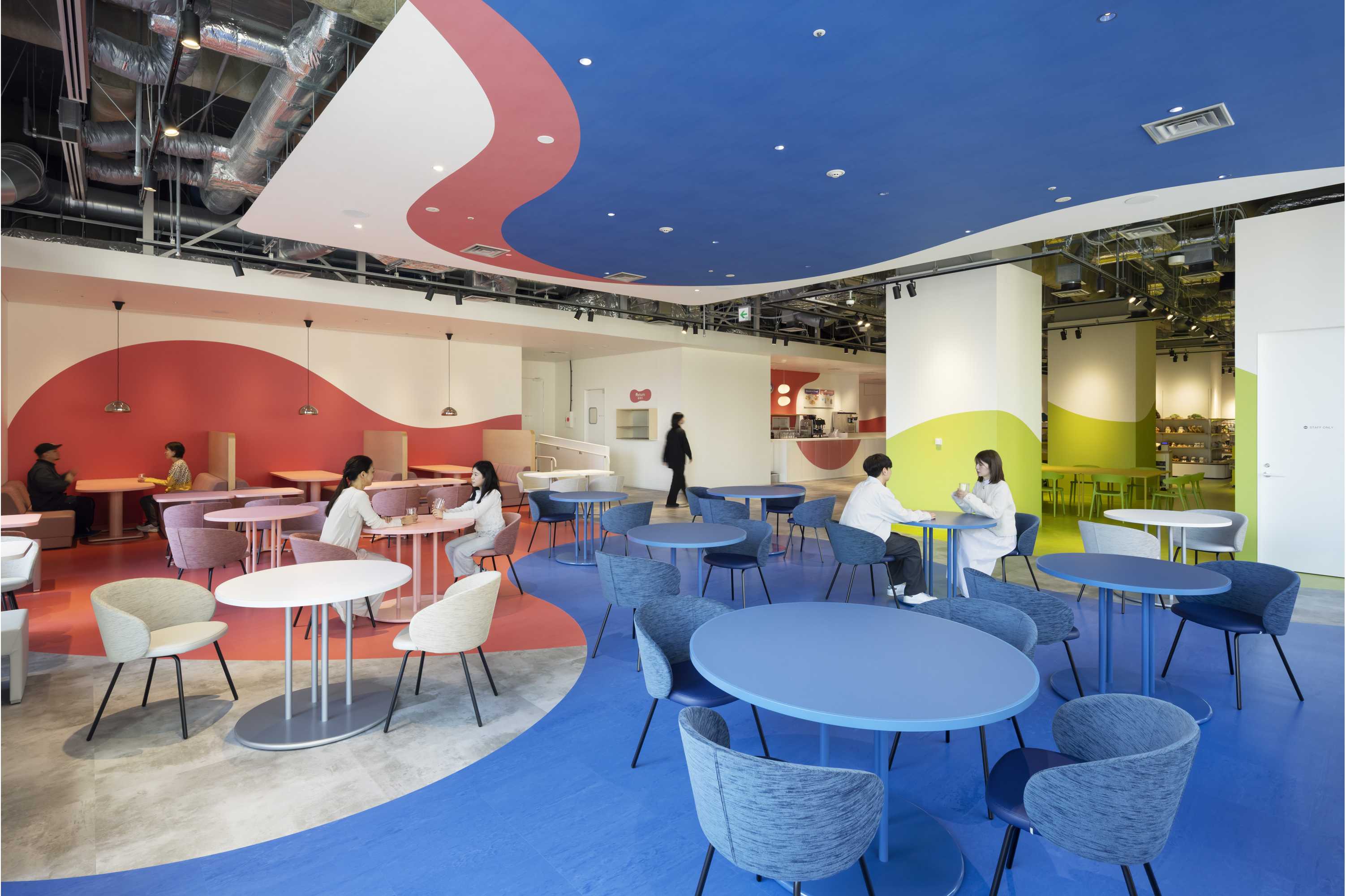 4階で没入体験を楽しんだ後も、3階のカフェやショップで施設の世界観の余韻を感じながら過ごせる空間。施設ロゴのカラーを取り入れた色彩豊かな空間で、世界観を反映したオリジナルメニューを提供し、施設全体の滞在価値を高めます。
