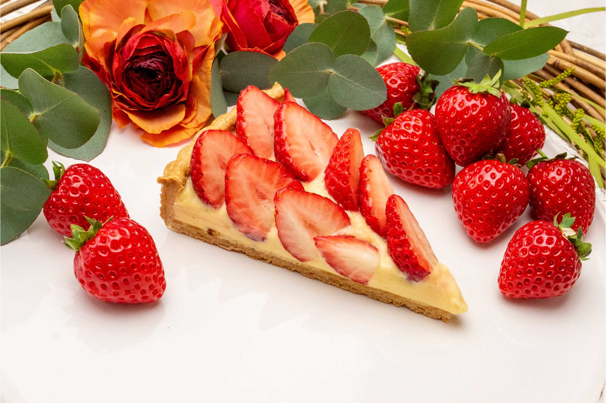 今回のタルトには、埼玉県で“あまりん”を生産する北田農園のいちごを使用。丁寧に育てられた果実をふんだんに使用し、口いっぱいに広がる濃厚な甘みと、みずみずしい味わいを存分に楽しめるよう仕立てました。1ホールに約35粒を使用することで、イチゴそのものの魅力をしっかりと感じていただけます。