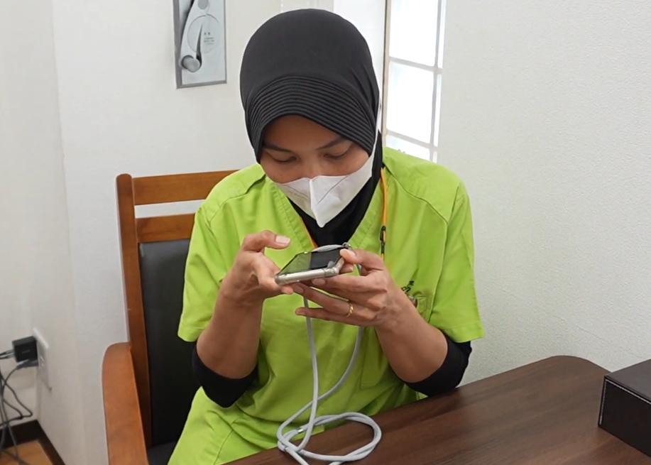 以前は日本語での入力に苦労していましたが、導入後は記録時間が約半分になりました。インドネシア語で「のどが渇いている」と伝えても、正しい日本語の文章にしてくれるので、記録だけでなく日本語の勉強にもなりとても助かっています。