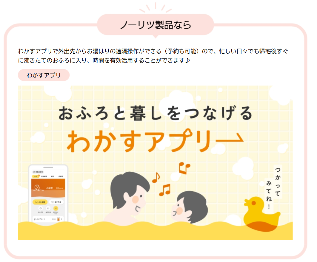 また、「わかすアプリ」をはじめとした当社が提供する入浴に関する各コンテンツとも連携し、さらなるサービスの充実を図ります。