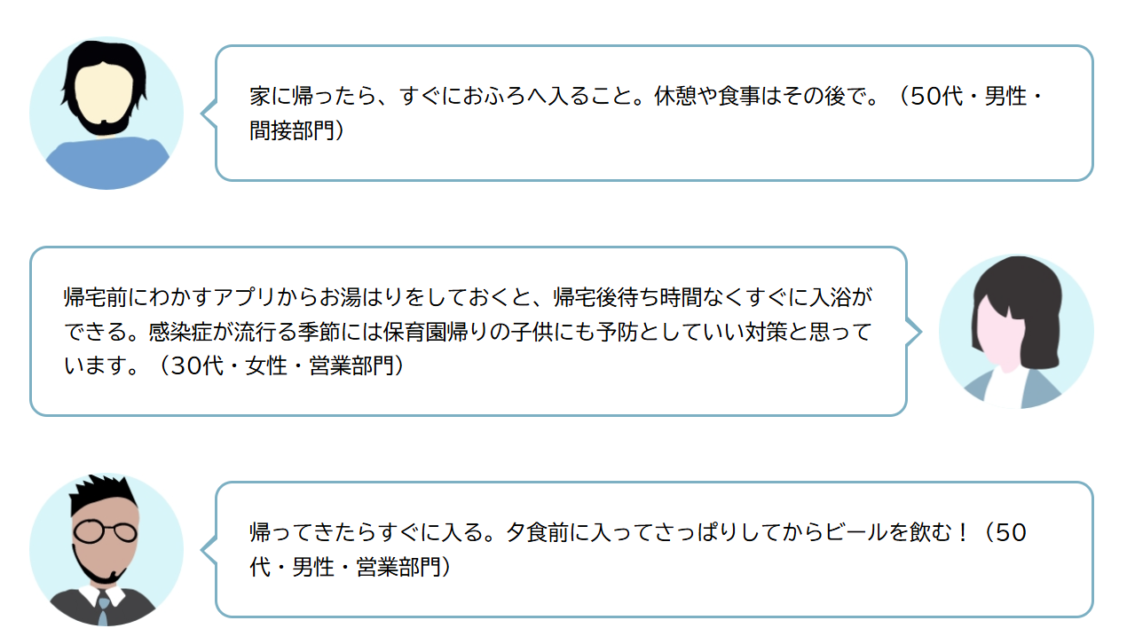 ノーリツ社員へのアンケートをもとに、おふろ習慣を続けるアイデアを公開
