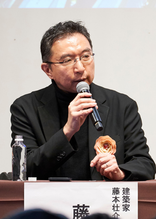 当日は昨年開催された大阪・関西万博の会場デザインプロデューサーを務め、象徴的な木造建築物である大屋根リングも手掛けた建築家の藤本壮介氏ほか、日本建築士会連合会名誉会長の三井所清典氏、日本住宅・木材技術センター理事長を務める宮澤俊輔氏、東京大学名誉教授で木質構造の権威である稲山正弘氏、木造建築防耐火研究の第一人者として知られる安井昇氏が登壇。また、日経アーキテクチュア元編集長で画文家の宮沢洋氏が進行役を務めるパネルディスカッションを実施しました。