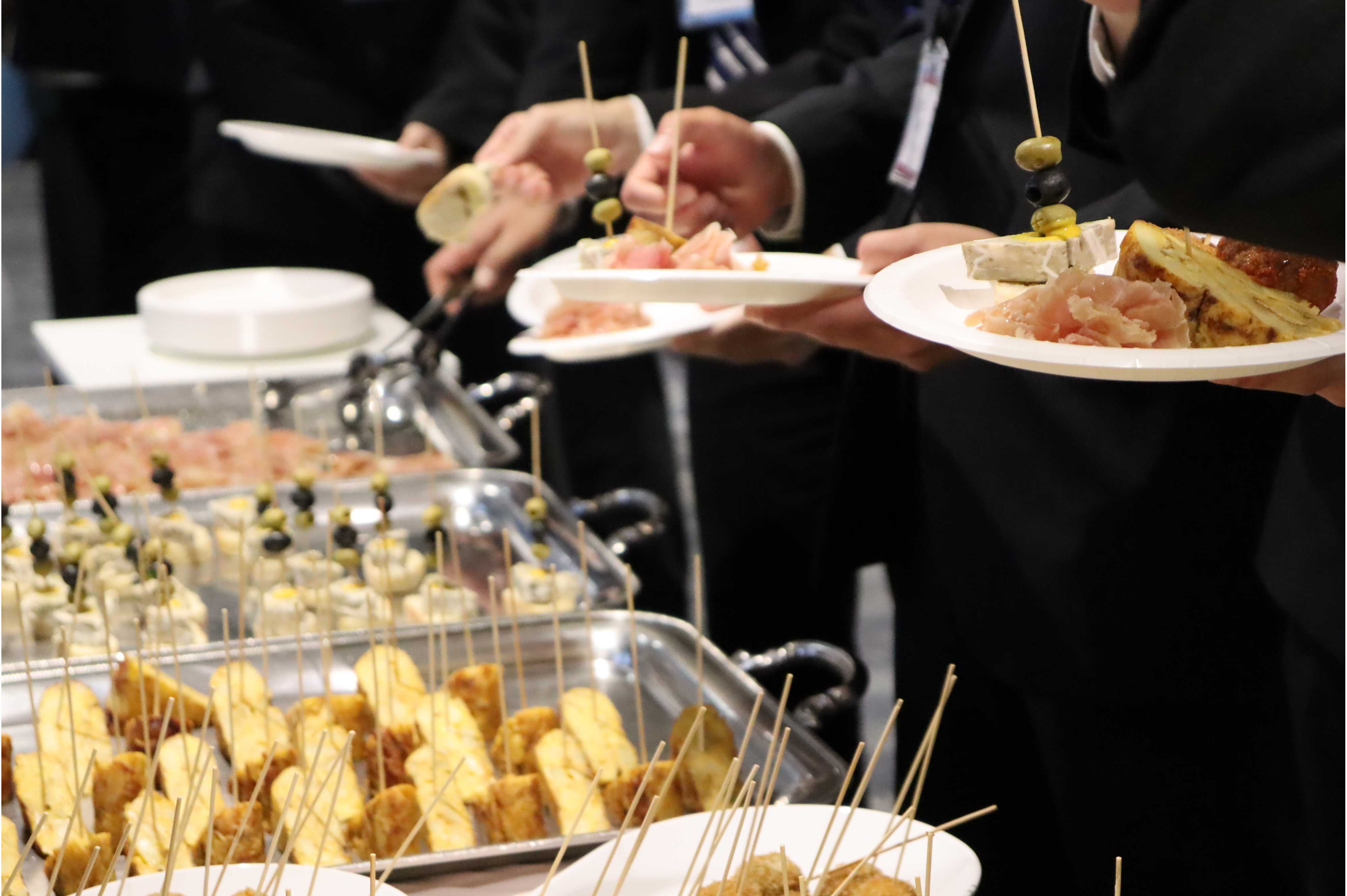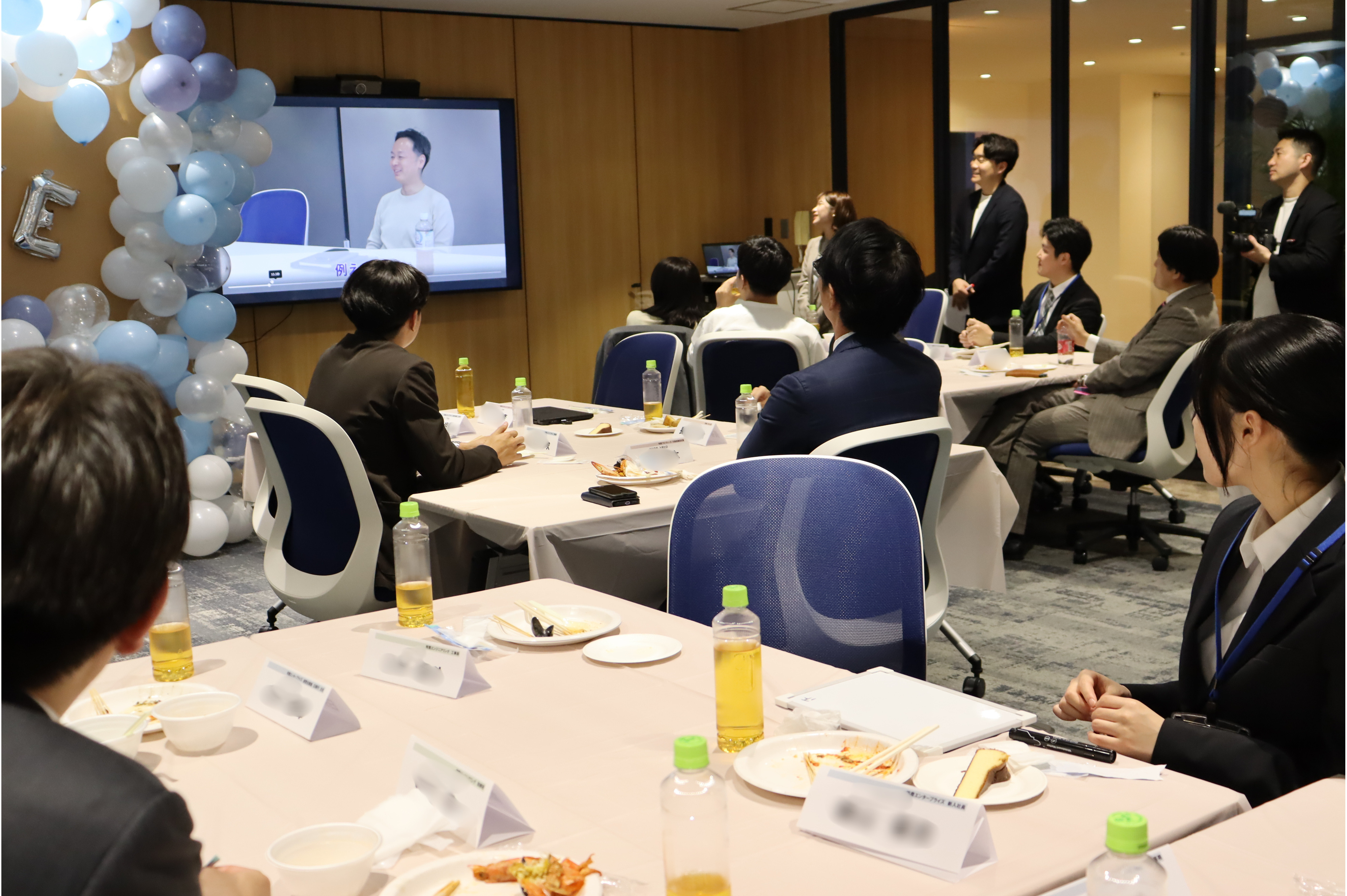 近年、入社初期におけるコミュニケーションの重要性が高まっていることを受け、式典後には新卒・若手社員の声を反映した「ウェルカムランチ」を開催しました。役員や配属先の若手先輩社員(入社2~3年目)が参加し、ビュッフェ形式で和気あいあいとした雰囲気の中、トークテーマに沿った対話を通じて世代や部署を超えた交流を深める機会となりました。