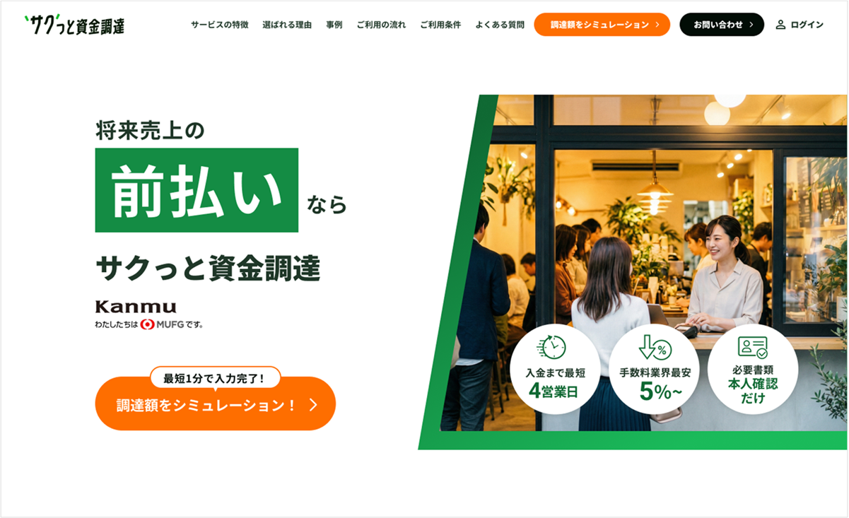 株式会社カンム(本社:東京都渋谷区、代表取締役:八巻 渉、以下「カンム」)は、将来売上を前払いすることで中小事業者に資金を提供する「サクっと資金調達」のサービスサイトをリニューアルいたしました。